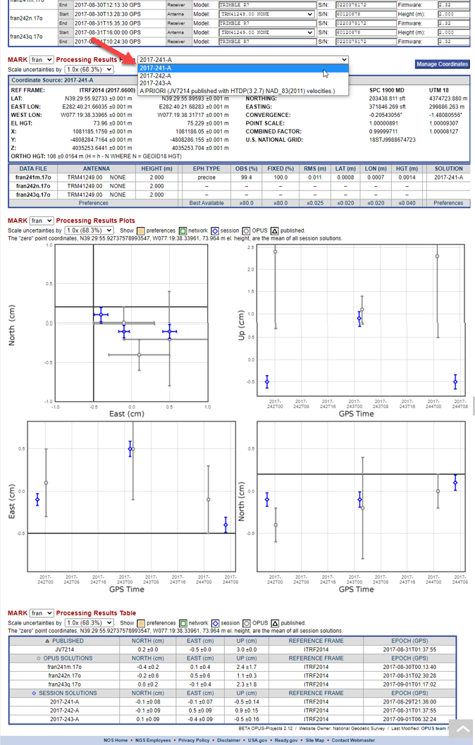The Processing Results Plots and Processing Results Table show the a priori coordinate shifts which result from the session processing (see Glossary for more information on a priori coordinates). The shifts should be small.
